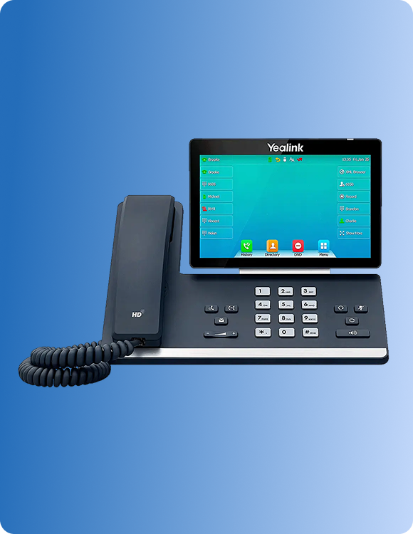 The KloudMD Desk Phone is a Yealink T54W, a professional-grade VoIP phone built for busy practices. HD audio, adjustable 4.3" color display, up to 16 SIP accounts, and seamless integration with KloudMD. Every call is logged to the patient profile, recorded, and transcribed by AI. Caller ID pulls patient info before you pick up. Transfer calls between providers with one touch. Plug it into your network and it's ready, ships pre-configured to your KloudMD account.