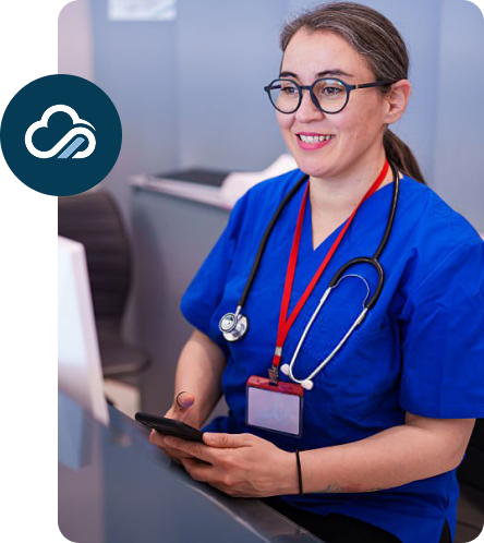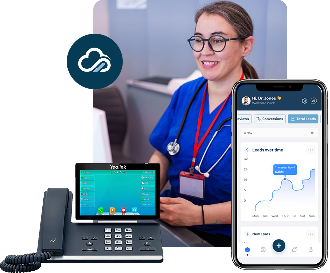 Enterprise desk phone and mobile app, both fully integrated with KloudMD. Every call, every message, every patient, whether you're at the front desk or on your phone.